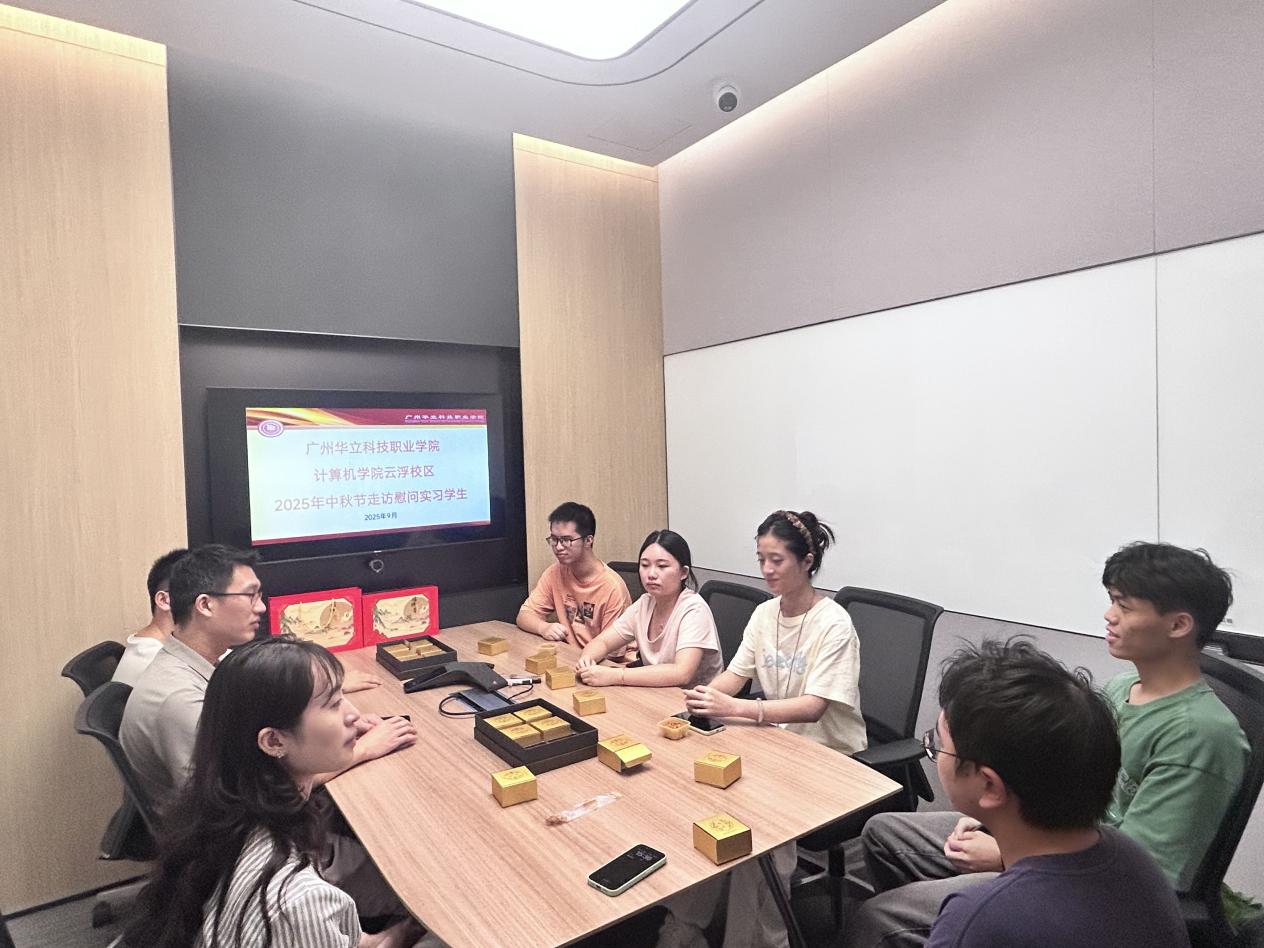 當(dāng)日下午,黃院助一行來(lái)到元時(shí)空智能科技有限公司,親切看望了正在這里實(shí)習(xí)的2023級(jí)學(xué)生,為他們送上中秋月餅和節(jié)日的暖心祝福,并與學(xué)生代表座談。