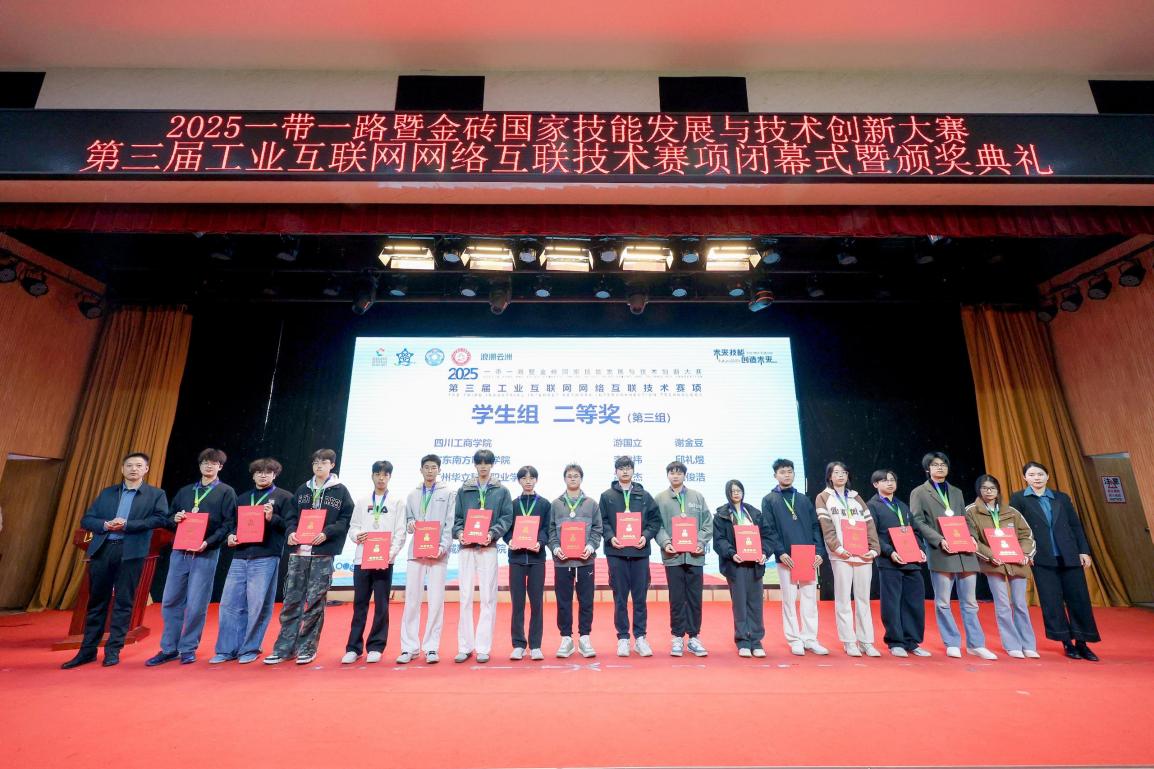 2025年11月7日-9日,2025年“一帶一路”暨金磚國家技能發(fā)展與技術創(chuàng)新大賽第三屆工業(yè)互聯網網絡互聯技術賽項全國總決賽在山東工程職業(yè)技術大學隆重舉行,吸引了來自全國81所院校的132支參賽隊伍同場競技。我校計算機信息工程學院閔小翠、王建華老師指導選派的兩支代表隊(1隊:馮俊杰,劉俊浩、2隊:彭依琳,魏淙正),在全國總決賽賽場上,歷經四小時的激烈比拼,最終憑借扎實的專業(yè)知識、科學的團隊協作,最終脫穎而出,榮獲全國總決賽二等獎1項、三等獎1項,為學校贏得榮譽。我校榮獲“優(yōu)秀組織獎”、兩位指導教師榮獲“優(yōu)秀指導教師”稱號。