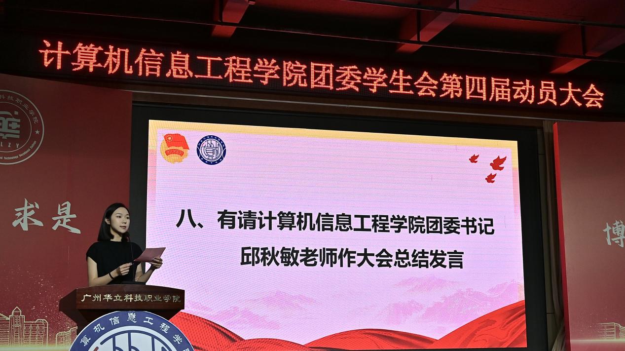 最后,計(jì)算機(jī)信息工程學(xué)院團(tuán)委書(shū)記邱秋敏老師為本次大會(huì)作總結(jié)發(fā)言。邱老師對(duì)大會(huì)的順利召開(kāi)表示祝賀,并對(duì)新一屆學(xué)生會(huì)提出了殷切期望與具體要求,希望全體成員能夠繼承優(yōu)良傳統(tǒng),加強(qiáng)自身建設(shè),切實(shí)發(fā)揮橋梁紐帶作用,開(kāi)創(chuàng)學(xué)院團(tuán)學(xué)工作新局面。