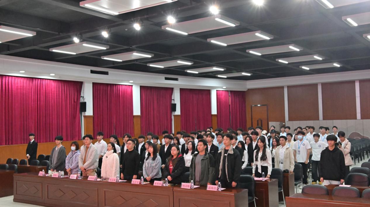 隨后,全體起立奏唱團(tuán)歌,激昂的旋律回蕩在會(huì)場(chǎng),點(diǎn)燃了在場(chǎng)每一位學(xué)子的青春激情與責(zé)任擔(dān)當(dāng)。