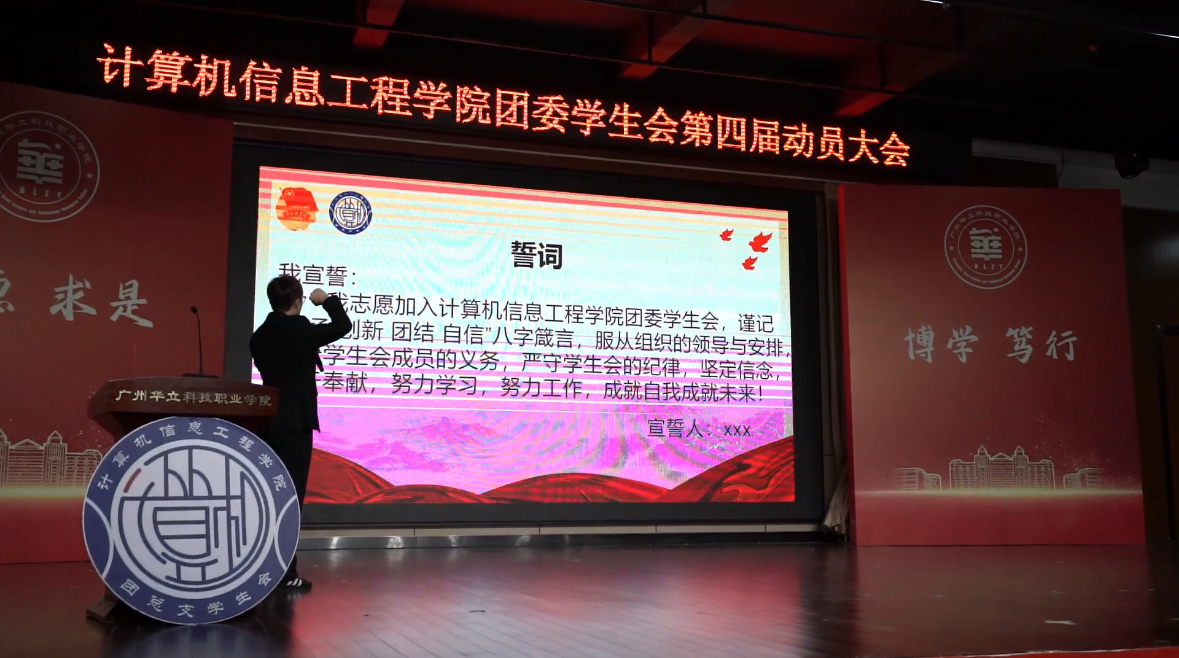 在其后舉行的宣誓環(huán)節(jié)中,主席團(tuán)代表李逸宸同學(xué)帶領(lǐng)第四屆學(xué)生會(huì)全體成員莊嚴(yán)宣誓,承諾將恪守職責(zé),服務(wù)師生。鏗鏘有力的誓言,彰顯了新一批學(xué)生干部的決心與擔(dān)當(dāng)。