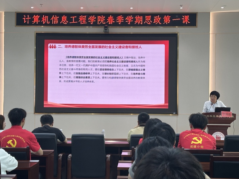 為深入學(xué)習(xí)貫徹習(xí)近平總書記關(guān)于青年工作的重要思想,引導(dǎo)廣大青年堅定理想信念、勇?lián)鷷r代使命,3月25日下午,在圖書館104會議室,學(xué)校黨委副書記、副校長王洪艷以“把青春播撒在民族復(fù)興的征程上”為主題,為計算機(jī)信息工程學(xué)院師生帶來一堂主題鮮明、內(nèi)涵豐富的思政第一課。