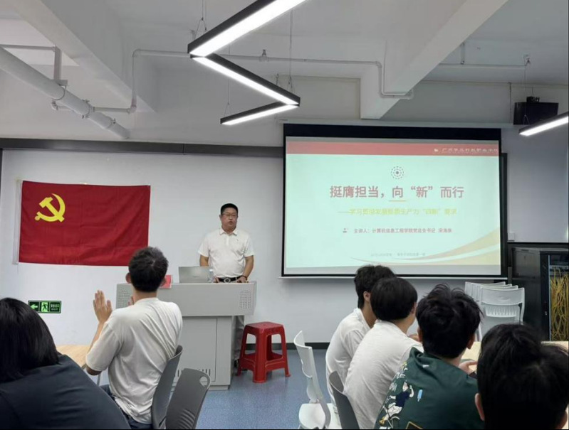 為深入學(xué)習(xí)貫徹習(xí)近平總書記關(guān)于發(fā)展新質(zhì)生產(chǎn)力的重要論述,引領(lǐng)青年學(xué)子把握時(shí)代大勢(shì)、勇?lián)鷷r(shí)代使命,2026年3月26日上午,計(jì)算機(jī)信息工程學(xué)院黨總支書記宋海泉以“挺膺擔(dān)當(dāng),向‘新’而行” 為題,為學(xué)院學(xué)生講授思政第一課,圍繞新質(zhì)生產(chǎn)力 “四新” 要求,系統(tǒng)闡釋時(shí)代召喚、根本遵循、教育使命與青年擔(dān)當(dāng)。