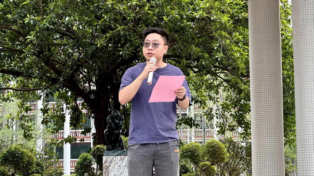 升旗儀式后,計算機(jī)信息工程學(xué)院黨總支專職副書記兼學(xué)管副主任朱志豪老師發(fā)表國旗下講話。他向全體師生致以五一勞動節(jié)的問候,強調(diào)勞動是中華民族的精神基因,奮斗是新時代最動人的底色。他希望同學(xué)們厚植勞動情懷、錘煉過硬本領(lǐng)、勇于擔(dān)當(dāng)作為,以實干踐行使命,用奮斗成就未來。