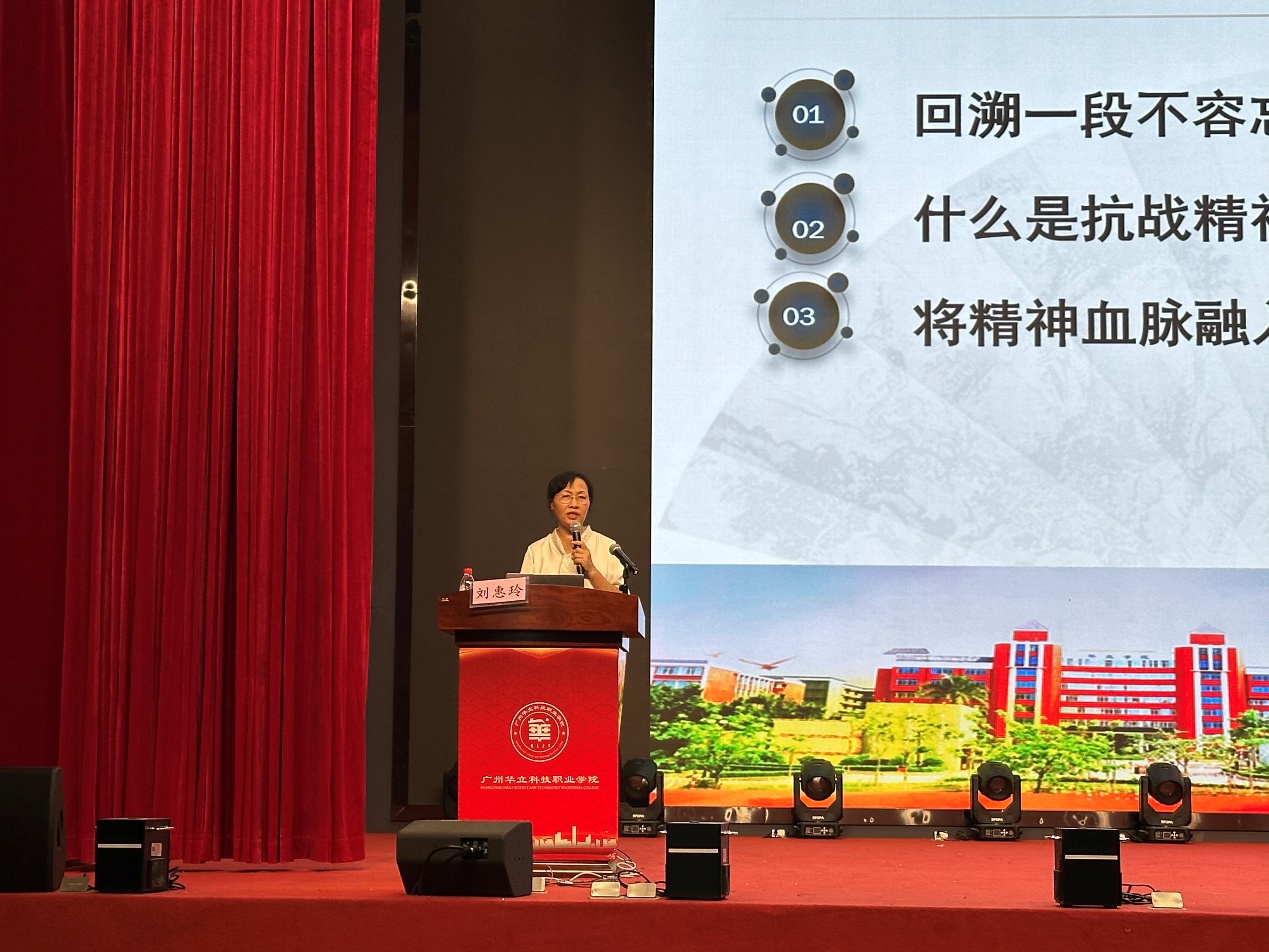 講座伊始,劉惠玲書記帶領大家將目光投向八十多年前那片硝煙彌漫的神州大地。劉書記以四個維度立體呈現抗戰(zhàn)精神:家國情懷——從西南聯大師生徒步三千里的文化堅守,到青年學子投筆從戎的報國壯舉,詮釋"茍利國家生死以"的崇高境界;民族氣節(jié)——通過楊靖宇將軍"草根棉絮鑄忠魂"、狼牙山五壯士"舍生取義"的壯烈事跡,展現中華民族的精神脊梁;斗爭智慧——以平型關大捷中"小米加步槍"戰(zhàn)勝機械化部隊的經典戰(zhàn)例,揭示戰(zhàn)略戰(zhàn)術的永恒價值;信念之光——通過《論持久戰(zhàn)》的戰(zhàn)略預見,彰顯中國共產黨人的歷史洞察力。"那段烽火歲月里的青春選擇,是用生命書寫的時代答卷。"劉書記的講述讓歷史煥發(fā)出直抵人心的力量。
