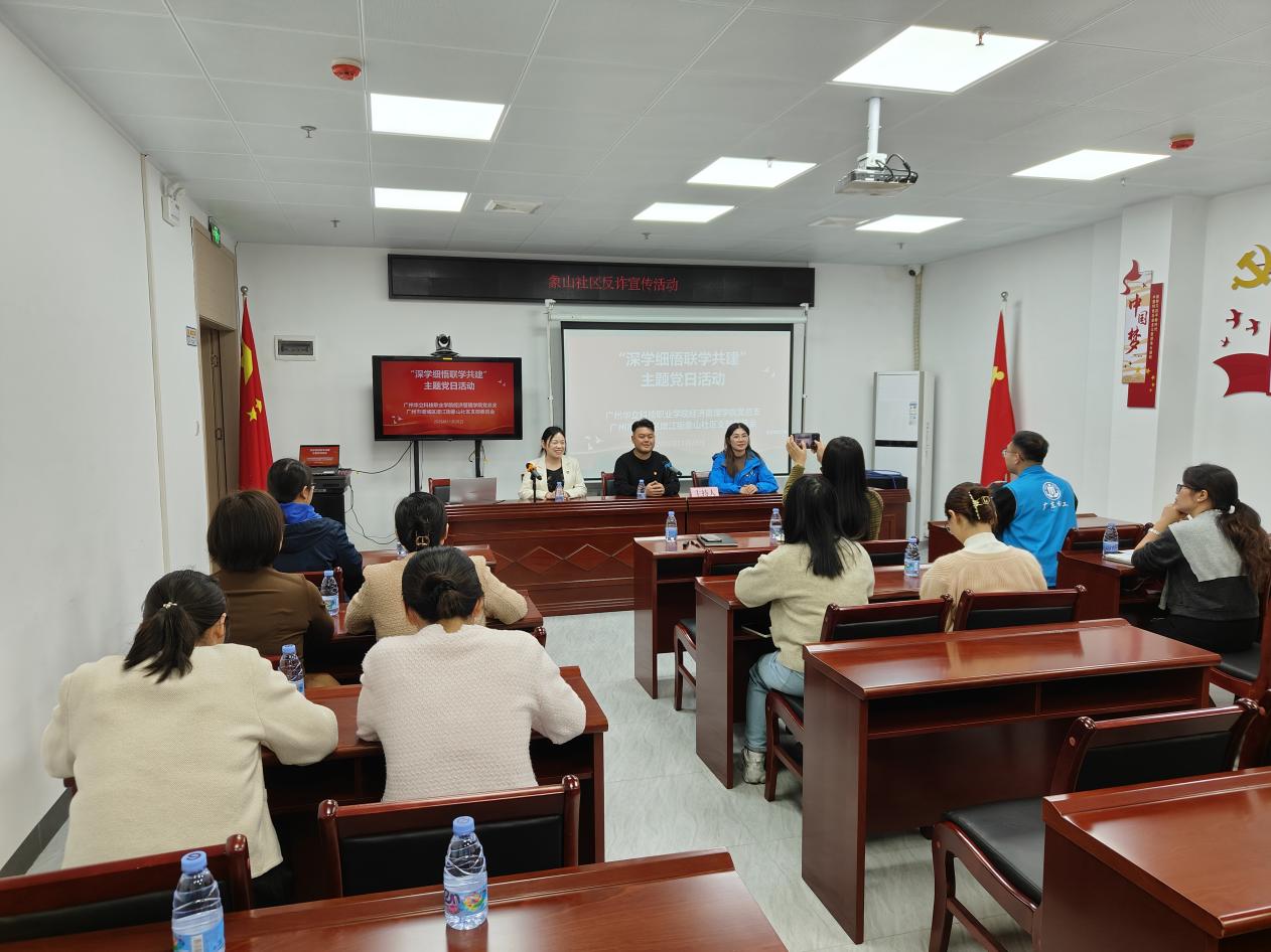 為深入學(xué)習(xí)貫徹黨的二十屆四中全會(huì)精神,推動(dòng)黨建與基層治理深度融合,構(gòu)建“政-校-社”協(xié)同發(fā)展新格局,2025年11月28日上午,廣州華立科技職業(yè)學(xué)院經(jīng)濟(jì)管理學(xué)院黨總支聯(lián)合廣州市增城區(qū)增江街象山社區(qū)支部委員會(huì)和廣州市增江街社工服務(wù)站支部委員會(huì)在象山社區(qū)黨群服務(wù)中心,共同開展“深學(xué)細(xì)悟、聯(lián)學(xué)共建”主題黨日活動(dòng)。廣州華立科技職業(yè)學(xué)院經(jīng)濟(jì)管理學(xué)院黨總支委員、副院長(zhǎng)朱向平,增江街象山社區(qū)黨支部書記麥志穎、增江街社工服務(wù)站黨支部書記宗穎施及三方黨員代表共同參與活動(dòng)。