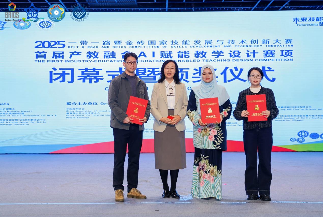 12月14日至17日,2025年“一帶一路”暨金磚國家技能發(fā)展與技術創(chuàng)新大賽首屆產教融合AI賦能教學設計賽項決賽在廣東職業(yè)技術學院高明校區(qū)圓滿舉行。我校經濟管理學院4支教師參賽隊伍憑借扎實的教學功底與創(chuàng)新的產教融合AI賦能教學設計理念斬獲二等獎1項(楊素芹與馬來西亞美里茂理工學院ROSFASHIHAH BINTI ROSLAN)、三等獎2項(梁慧貞與王赟、李萍與何玉冰)及優(yōu)勝獎1項(何勝華與鄧一平);同時,學校因組織工作周密、支持保障有力,被大賽組委會授予“優(yōu)秀組織獎”,并成為“全球南方AI工坊”首批創(chuàng)始成員單位之一,彰顯了我校在產教融合與國際教育合作領域的強勁實力。