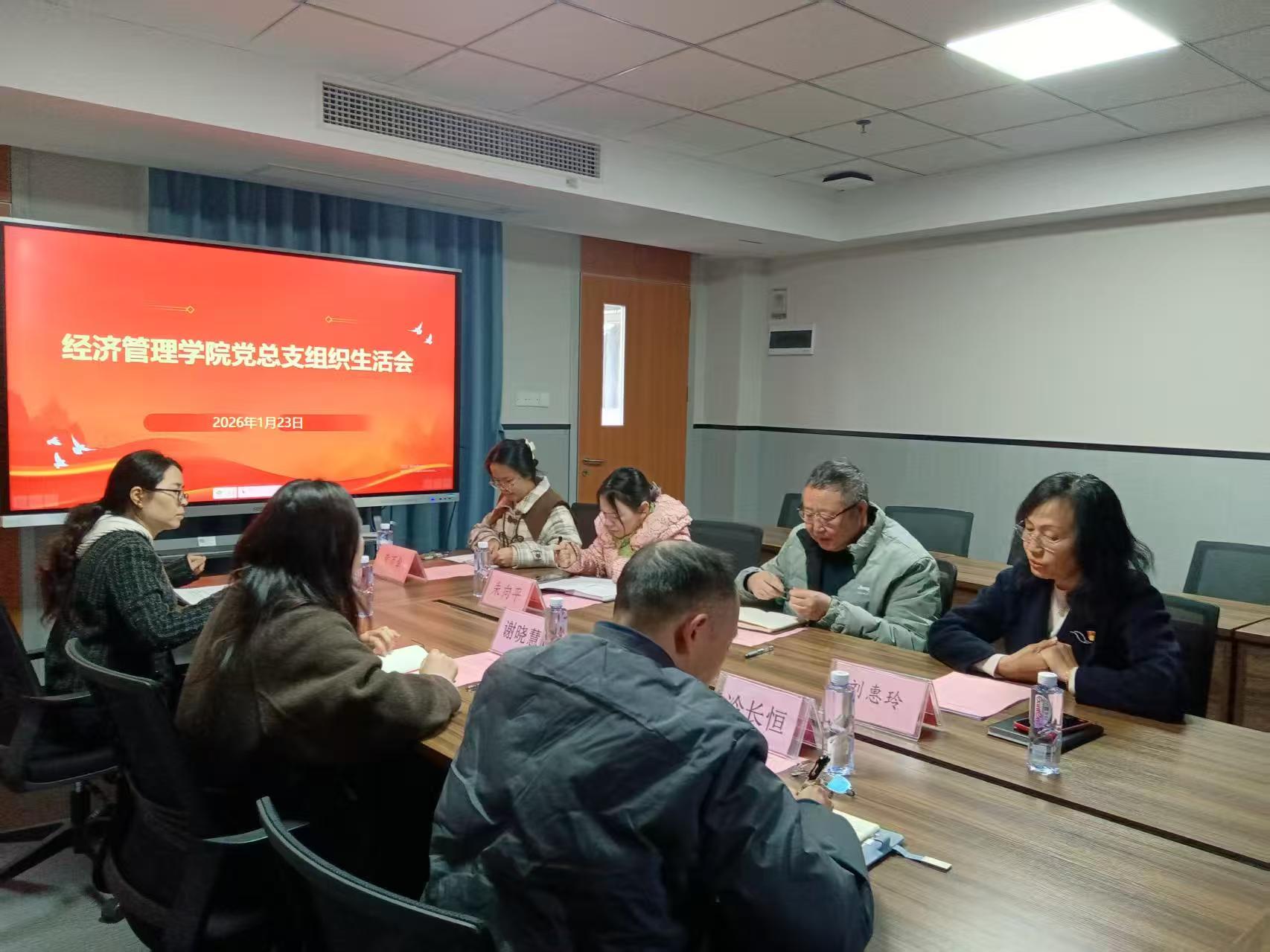 為深入學習貫徹習近平新時代中國特色社會主義思想和黨的二十屆四中全會精神,全面落實黨中央全面從嚴治黨部署及學校黨委工作要求,切實加強黨組織建設(shè)和黨員干部黨性錘煉,2026年1月23日,經(jīng)濟管理學院黨總支在西一教學樓613會議室召開2025年度專題組織生活會。校黨委辦公室主任梁德君同志蒞臨指導,學院黨總支委員參加會議,會議由黨總支書記劉惠玲同志主持。