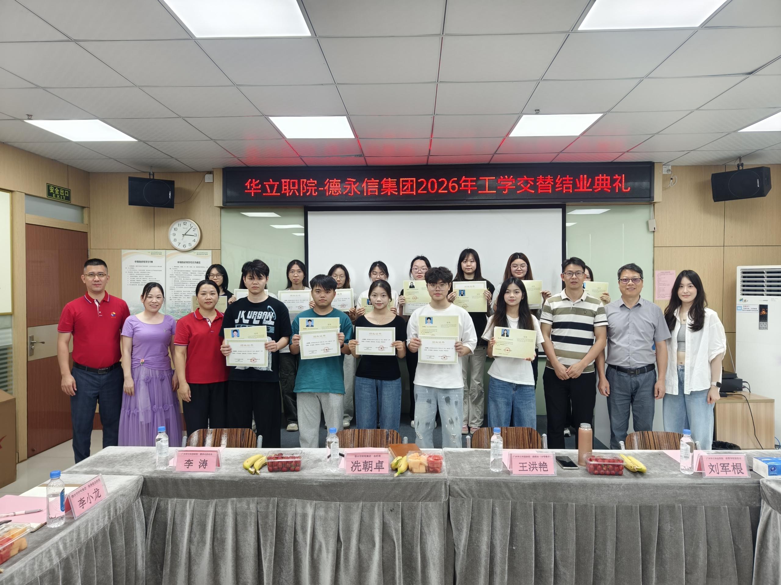 2026 年 4月 22 日下午,廣州華立科技職業(yè)學(xué)院副校長王洪艷,率經(jīng)濟(jì)管理學(xué)院領(lǐng)導(dǎo)班子及骨干教師一行,專程赴深圳市德永信財稅集團(tuán)有限公司,開展黨建交流、企業(yè)參觀、校友座談、訪企拓崗,并出席“華立-德永信”第十期訂單班工學(xué)交替結(jié)業(yè)典禮系列活動。雙方自2008年合作至今,歷經(jīng)十八年深耕、連續(xù)十期辦學(xué),充分展現(xiàn)校企深度融合、協(xié)同育人的豐碩成果。