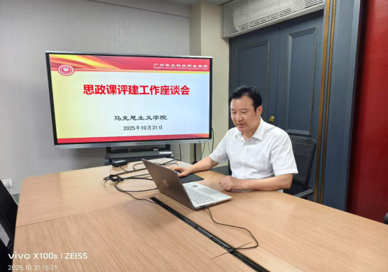 會(huì)議伊始,廖良初院長首先帶領(lǐng)大家學(xué)習(xí)了教育部辦公廳《關(guān)于開展2025-2026學(xué)年高校思政課課堂教學(xué)提升行動(dòng)的通知》、《廣州華立科技職業(yè)學(xué)院教學(xué)事故認(rèn)定處理辦法》等文件精神,介紹了召開本次座談會(huì)的背景與目的。他指出,思政課是落實(shí)立德樹人根本任務(wù)的關(guān)鍵課程,在當(dāng)前新形勢新要求下,對(duì)標(biāo)《馬克思主義學(xué)院建設(shè)標(biāo)準(zhǔn)(2023年版)》,落實(shí)教育部“思政課課堂教學(xué)提升行動(dòng)”精神,扎實(shí)推進(jìn)思政課評(píng)建工作,打造思政“金課”,推動(dòng)馬克思主義學(xué)院內(nèi)涵式發(fā)展。他希望通過此次座談,能夠集思廣益,明確方向,凝聚共識(shí),找準(zhǔn)問題,解決問題,推動(dòng)發(fā)展。