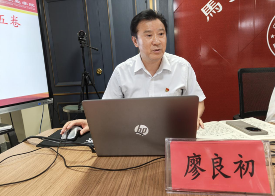 學習伊始,廖良初教授作學習動員。他闡述了《習近平談治國理政》第五卷出版發(fā)行的重大意義。該著作收錄了習近平總書記從2022年5月27日至2024年12月20日期間的報告、講話、談話、演講、致辭、文章等共91篇,分為18個專題。該著作生動記錄了以習近平同志為核心的黨中央統(tǒng)籌國內(nèi)國際兩個大局,完整準確全面貫徹新發(fā)展理念,著力推動高質(zhì)量發(fā)展,進一步謀劃和推進全面深化改革,攻堅克難、砥礪奮進,推動全面建設(shè)社會主義現(xiàn)代化國家邁出堅實步伐的生動實踐,集中展現(xiàn)了堅持“兩個結(jié)合”、推進馬克思主義中國化時代化的最新成果,充分反映了我們黨為推動構(gòu)建人類命運共同體貢獻的智慧方案,是全面系統(tǒng)反映習近平新時代中國特色社會主義思想新成果的權(quán)威著作。廖院長要求大家學思踐悟、學用結(jié)合,以馬克思主義中國化時代化最新成果武裝頭腦、指導實踐、推動工作。