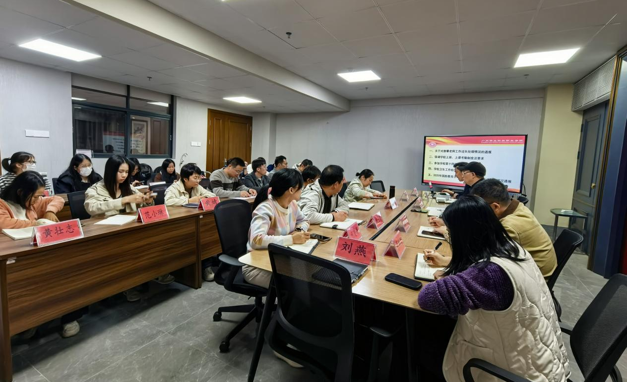 首先,廖良初院長針對近期個別老師在教學過程中存在教學準備不充分、組織教學不到位、臨場應變不及時、案例選用不精當、接受批評不虛心等問題,提出了嚴厲批評,并令其作出了深刻檢討。隨后,廖良初院長組織大家重新學習了《馬克思主義學院崗位職責和工作指南》,進一步明確了各類崗位的職責定位與工作要求。會議著重強調(diào)了學校關于上班、上課的考勤制度及相關紀律要求,并宣讀了學院簽發(fā)的通報處理文件,旨在強化教師的崗位意識與紀律觀念,保障教育教學秩序規(guī)范有序。