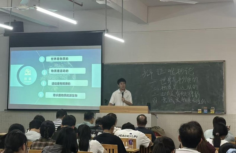在講授“世界的物質(zhì)統(tǒng)一性”重點內(nèi)容時,譚老師引經(jīng)據(jù)典、脈絡(luò)清晰,從古代樸素唯物主義的自然觀溯源,剖析近代形而上學(xué)唯物主義的理論局限,再到馬克思主義哲學(xué)辯證唯物主義的創(chuàng)立與發(fā)展,系統(tǒng)梳理了人類對世界本源問題的探索歷程,讓學(xué)生清晰地把握唯物主義的發(fā)展脈絡(luò)與理論進階。