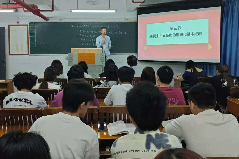 李月生老師圍繞《毛澤東思想和中國特色社會主義理論體系概論》課中的“新民主主義革命的道路和基本經(jīng)驗”這節(jié),講授了毛澤東關于新民主主義革命道路理論的提出與形成、必然性與可能性、基本內(nèi)涵與重大意義等多個知識點。他結(jié)合新民主主義革命過程中的重大史實,采取史論結(jié)合、案例解析、插播視頻等方法,深入淺出,尾尾道來。該課授課目標明確、思路清晰、層次分明、邏輯嚴密。參加觀摩的教師們專心致志,各位同學聚精會神。