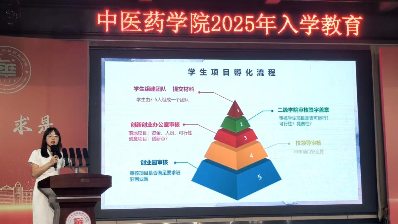 2025年9月5日,廣州華立科技職業(yè)學(xué)院中醫(yī)藥學(xué)院2025級(jí)新生入學(xué)教育之“創(chuàng)新創(chuàng)業(yè)第一課”在圖書(shū)館八樓學(xué)術(shù)報(bào)告廳成功舉行。主講人為中醫(yī)藥學(xué)院創(chuàng)新創(chuàng)業(yè)指導(dǎo)老師劉嘉楣,參與本次活動(dòng)的人員有中醫(yī)藥學(xué)院副院長(zhǎng)、直屬黨支部書(shū)記曾祥彪和中醫(yī)藥學(xué)院直屬黨支部專職副書(shū)記、學(xué)生管理辦公室副主任陳輝,以及中醫(yī)藥學(xué)院全體新生。