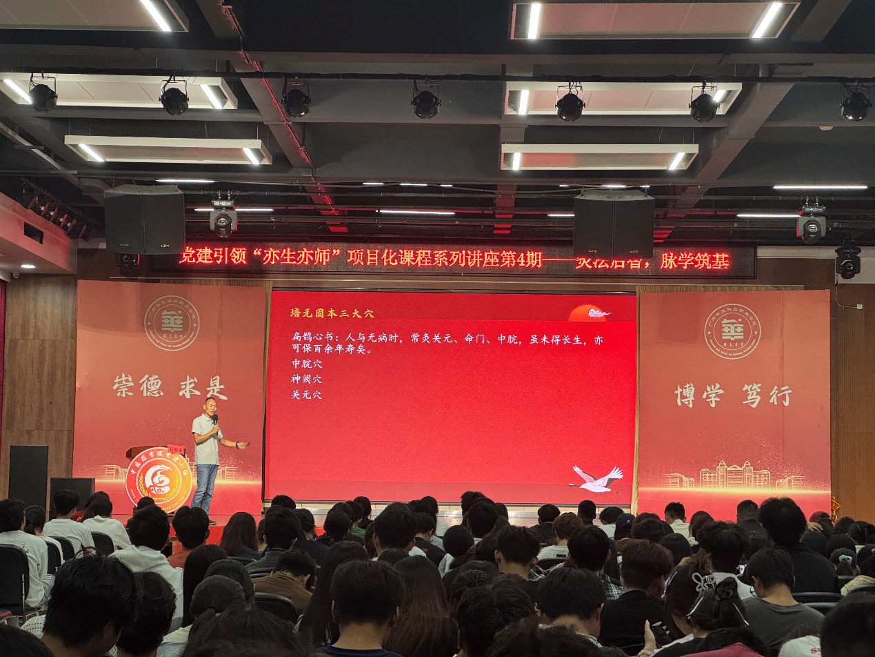 2025年11月6日,圖書(shū)館八樓暖意融融、座無(wú)虛席,中醫(yī)藥學(xué)院黨建小組聯(lián)合中醫(yī)藥應(yīng)用研究所精心打造的黨建引領(lǐng)“亦生亦師”項(xiàng)目化課程系列講座在此順利啟幕。作為中華優(yōu)秀傳統(tǒng)文化的璀璨瑰寶,中醫(yī)藥文化承載著千年先民的健康智慧,而艾灸與脈診更是其中歷經(jīng)歲月沉淀的核心技藝。本次講座以黨建為引領(lǐng),搭建起“師生共建、教學(xué)相長(zhǎng)”的交流平臺(tái),旨在讓青年學(xué)子近距離感受中醫(yī)藥的獨(dú)特魅力,傳承經(jīng)典、啟迪新知,為中醫(yī)藥文化的當(dāng)代傳播注入青春活力。