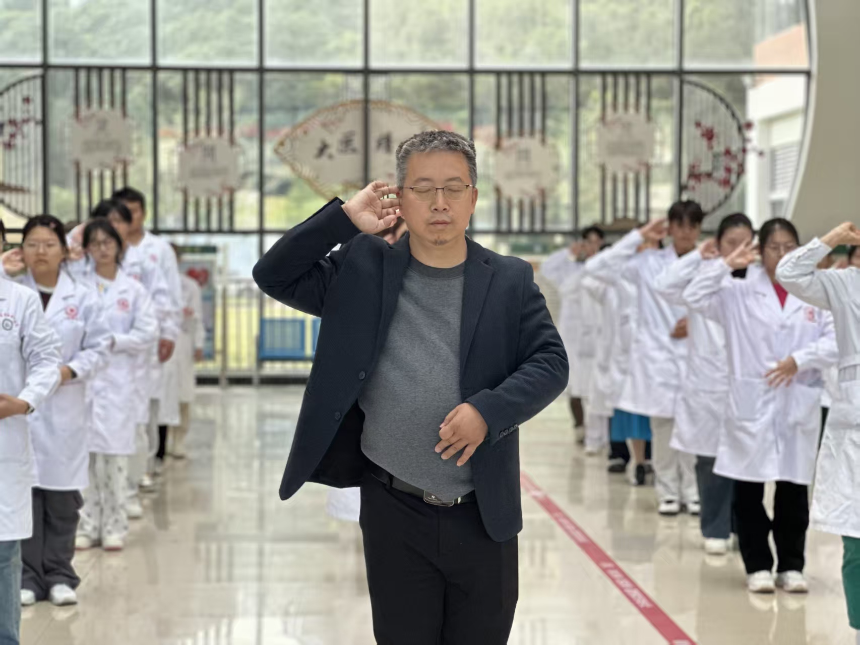 活動(dòng)伊始,敖威院長(zhǎng)對(duì)中醫(yī)藥學(xué)院師生代表的到來(lái)表示熱烈歡迎,并介紹了健康操在中醫(yī)養(yǎng)生保健中的應(yīng)用價(jià)值,他提到:“傳統(tǒng)導(dǎo)引功法是中醫(yī)文化的重要組成部分,希望通過(guò)此次交流,讓師生們?cè)谟H身體驗(yàn)中感受中醫(yī)養(yǎng)生的智慧,將健康理念融入日常學(xué)習(xí)生活?!?/span>