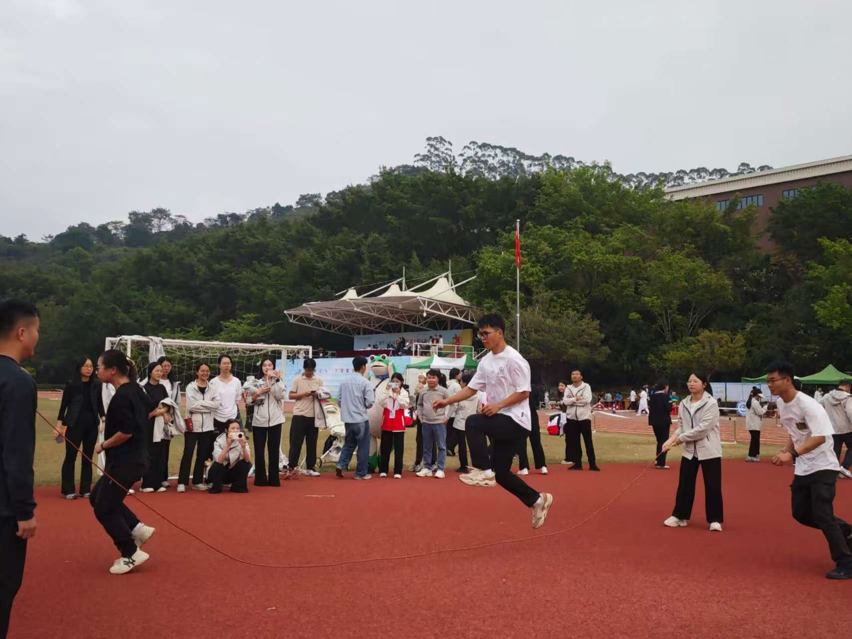 趣味賽場同樣熱鬧非凡,教師組積極投身兩人三足、乒乓球、跳繩、拔河項目。兩人三足中,老師們默契配合、穩(wěn)步向前;乒乓球賽場,揮拍博弈間盡顯競技技巧。其中跳繩項目尤為出彩,參賽教師們節(jié)奏精準、動作連貫,頂住壓力,穩(wěn)定發(fā)揮,最終以絕對優(yōu)勢勇奪第一名。