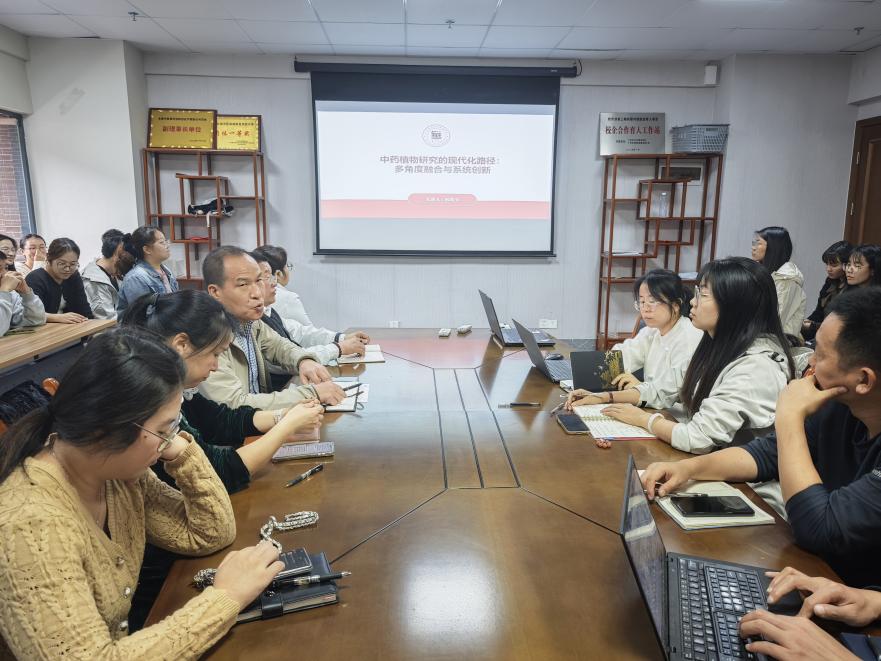 2025年12月19日,阮效先博士給全院教師做了一場主題為“中藥植物研究的現(xiàn)代化路徑:多角度融合與系統(tǒng)創(chuàng)新”的學(xué)術(shù)報告。