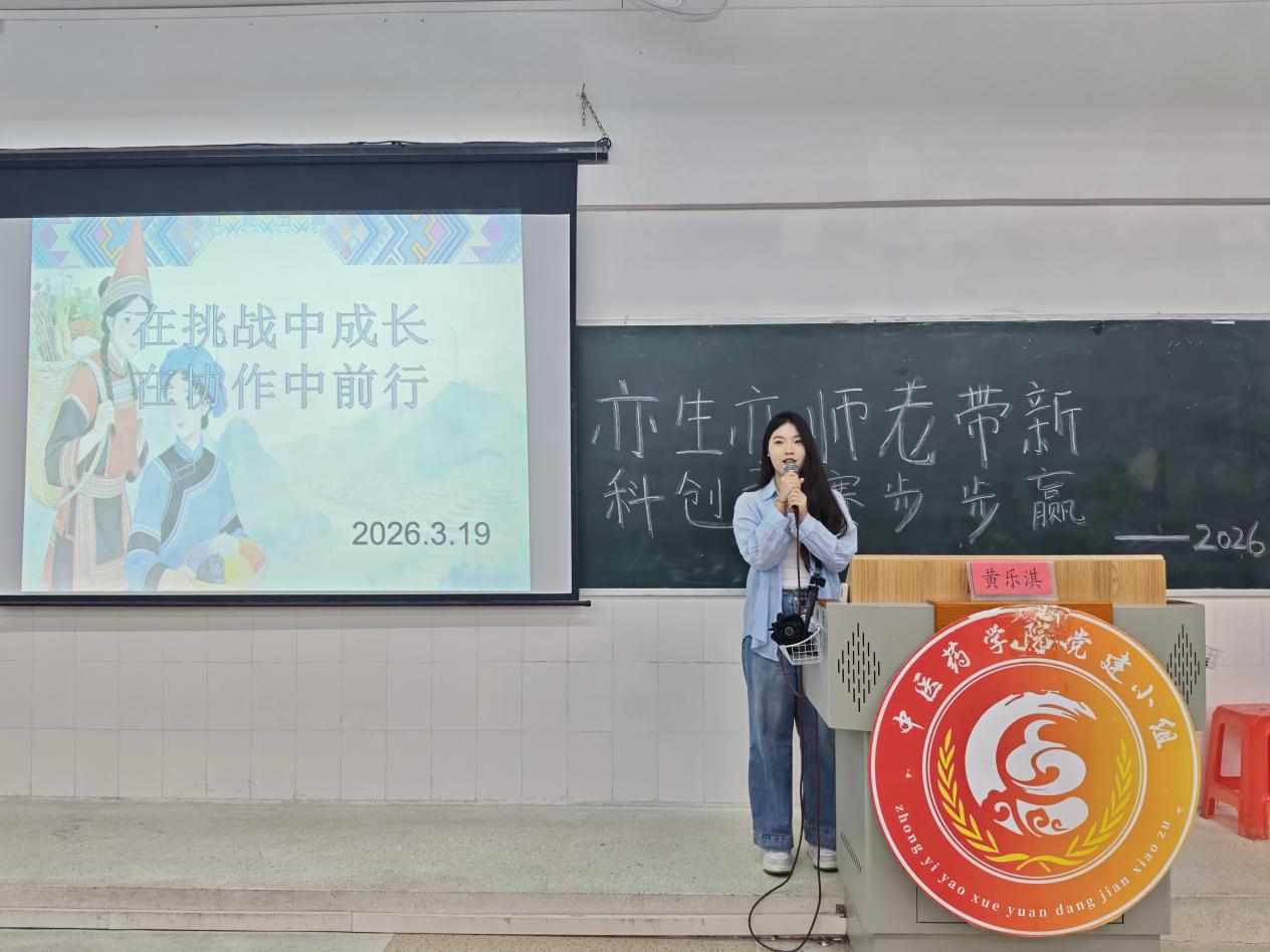 2026年3月19日晚,由中醫(yī)藥學(xué)院直屬黨總支主辦,中醫(yī)藥學(xué)院黨建小組與中醫(yī)藥應(yīng)用研究所協(xié)辦的黨建引領(lǐng)“亦生亦師”項(xiàng)目化課程系列講座第八期在圖書(shū)館304教室成功舉行。本次活動(dòng)以“亦生亦師老帶新,科技創(chuàng)新步步贏”為主題,潘菽弢博士攜手學(xué)生講師張士航、黃樂(lè)淇開(kāi)展分享,學(xué)院曾玉梅、劉嘉楣老師出席講座,24、25級(jí)學(xué)生共同參與。活動(dòng)圍繞科創(chuàng)競(jìng)賽、中醫(yī)技術(shù)傳承、團(tuán)隊(duì)協(xié)作、學(xué)生成長(zhǎng)等方面開(kāi)展,旨在以老帶新培育學(xué)生講師,創(chuàng)建創(chuàng)新創(chuàng)業(yè)團(tuán)隊(duì),夯實(shí)中醫(yī)藥傳承與科創(chuàng)實(shí)力。