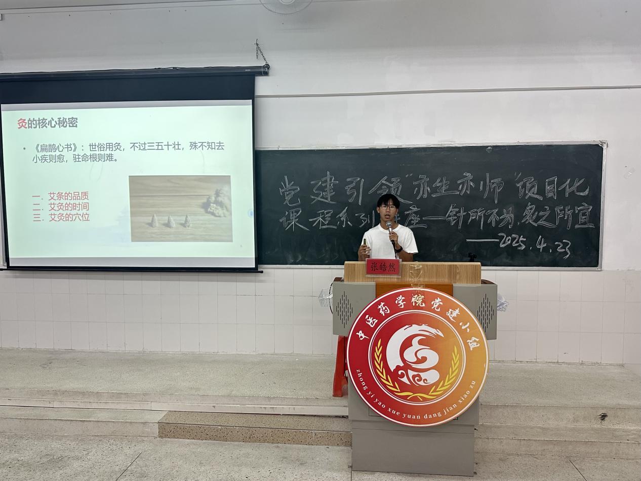 2026年4月23日,由中醫(yī)藥學(xué)院黨總支主辦,中醫(yī)藥學(xué)院黨建小組與中醫(yī)藥應(yīng)用研究所協(xié)辦的黨建引領(lǐng)“亦生亦師”項目化課程系列講座第十期,在圖書館304教室順利舉辦。本次講座以“針?biāo)粸椋闹恕敝黝},聚焦針刺與艾灸的臨床適用區(qū)別,由學(xué)生講師張皓然結(jié)合中醫(yī)經(jīng)典文獻(xiàn)、教學(xué)視頻與臨床診療實踐開展專題宣講,堅持理論與實操并重,助力中醫(yī)藥專業(yè)學(xué)生系統(tǒng)掌握灸療核心知識、夯實專業(yè)基礎(chǔ),搭建理論與臨床深度融合的能力提升平臺,推動中醫(yī)藥文化傳承創(chuàng)新與高質(zhì)量發(fā)展。